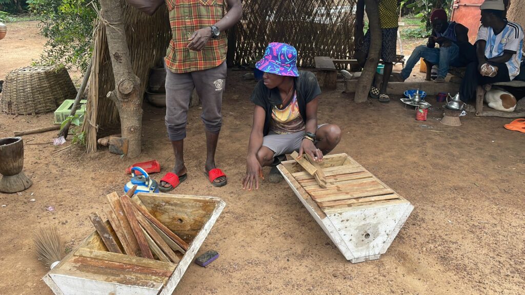 Ce projet ne se limite pas Ă lâinstallation de ruches, les jeunes se mobilisent pour fabriquer des ruches traditionnelles, en utilisant des matĂ©riaux locaux et des savoir-faire traditionnels. Cette transmission de techniques artisanales permet non seulement de valoriser les ressources disponibles, mais aussi de renforcer les compĂ©tences et la fiertĂ© des jeunes en formation.